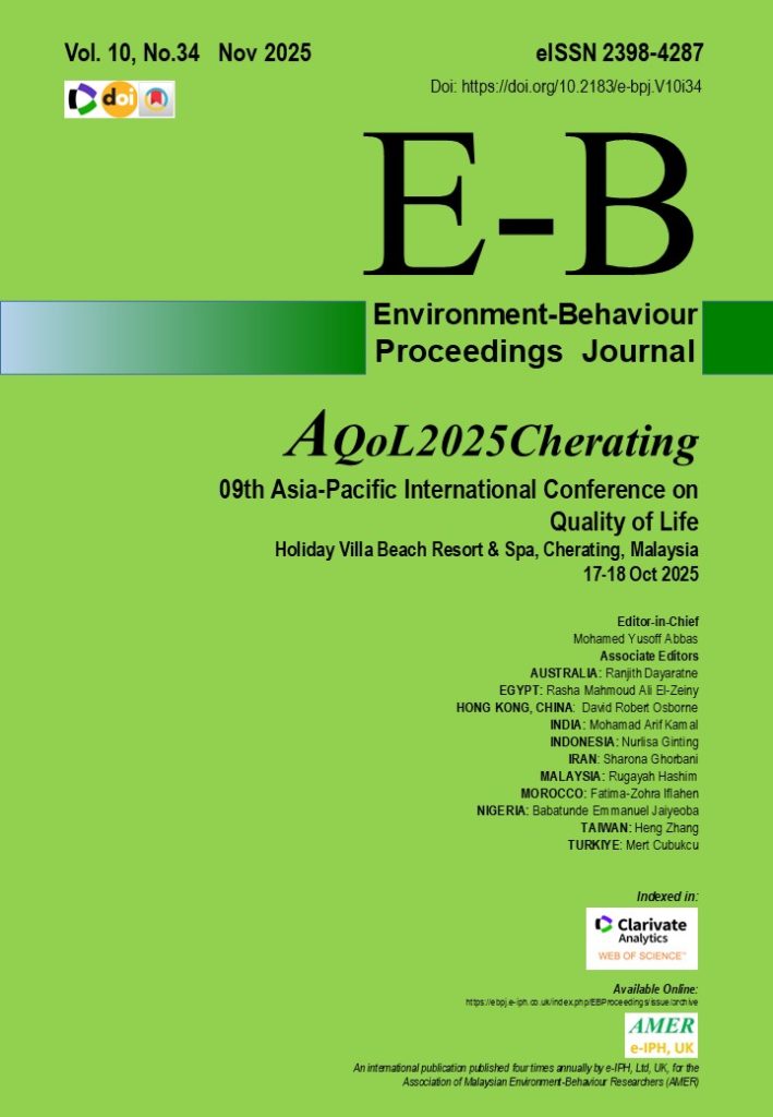 e-IPH, UK shall publish both the Abstract Book (eISBN 978-1-913576-20-2) and the Proceeding in the WoS-indexed E-BPJ (Environment-Behaviour Proceedings Journal), eISSN 2398-4287, 10(34) Nov 2025 issue. Currently, the E-BPJ is indexed in Clavirate Analytics Web of Science (WoS).